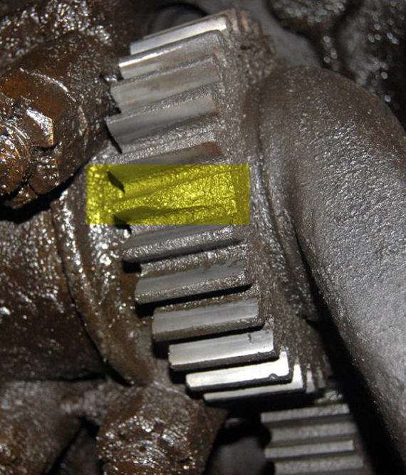 Interestingly.......the integral bevel gear cast with the camshaft gears drives NOTHING.......but very unexpected was this broken gear tooth on the crankshaft gear. Who would expect a cast iron gear here? It didn't make for an EASY repair.......but it's repaired!