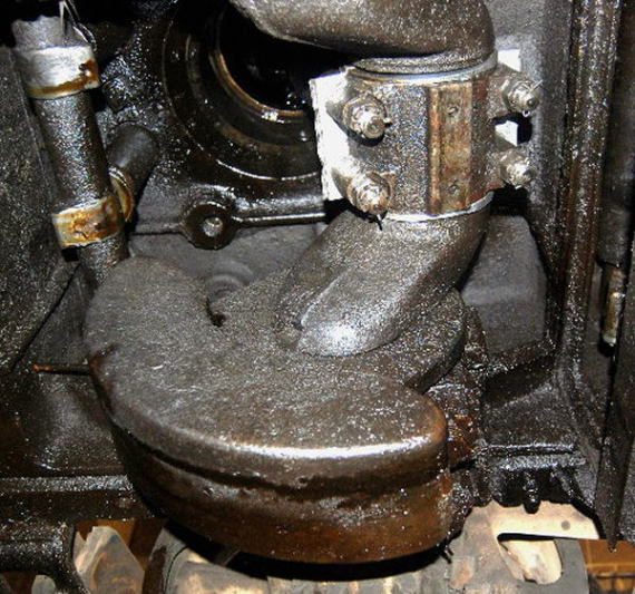 HERE'S a view very few folks will ever see. Craig is lying a creeper looking up into the crankcase to get this photo. Oh......that's another thing.......the tractor has been run without the crankcase "pan" cover. Luckily that part arrived along with the tractor!